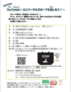 尾張旭市主催による「Asalympic(アサリンピック)」が、本学体育館にて開催されます。
