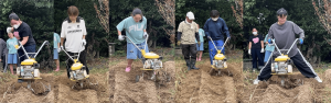 今回のテーマは「種まき」! …といっても、いきなり土にまくわけではありません。まずは、耕耘機(こううんき)を使って固まった土をほぐすところからスタートです。イノウエファームの井上さんに使い方を教えてもらい、デモンストレーションを見たあとは、いざ挑戦!一見シンプルそうな機械も、エンジンをかけるのにひと苦労。勢いをつけて思いきり引くと「ブオーン!」と音が響き、あたりに歓声が上がりました。 しかし、動かすのはさらに難関。固い土に阻まれ、まっすぐ進むのも一苦労…。右へ左へとふらつきながらも、井上さんの助言を受けて、みんなで貴重な初体験を楽しみました。