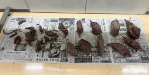 収穫したさつまいもがこちら! 左側が前回、右側が今回の収穫です。なんと一週間で見違えるほど大きく成長していました!