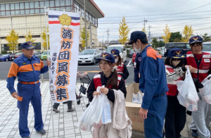 2025年11月13日㈭3限、ショッピングタウン ASKAにて「秋の火災予防運動における消防団の防火広報」に参加しました。