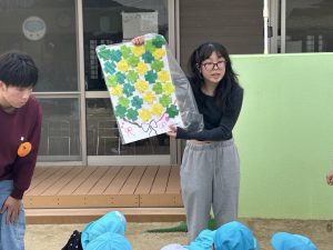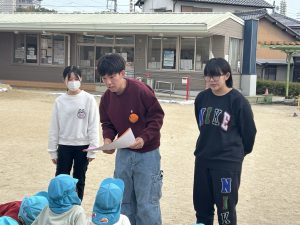 園児の皆さんは楽しそうに参加してくれましたが、学生にとっては活動の進め方や指導方法を振り返る良い機会となりました。机上では学べない実践から、多くの学びを得ることができました。