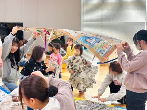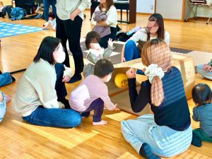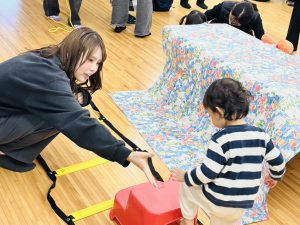 19組の未就園児親子と学生が一緒に楽しく運動遊びを行いました。