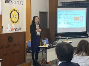高木弘恵学長が11月28日、尾張旭ロータリークラブ(舟橋龍秀会長)の例会において卓話を行い、大学と地域との連携の意義を伝えました。