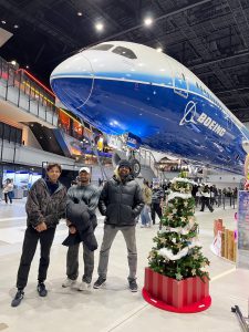 集合場所のターミナルビルでは、広々とした空間と国際色豊かな雰囲気に、学生たちの表情も自然と明るくなります。