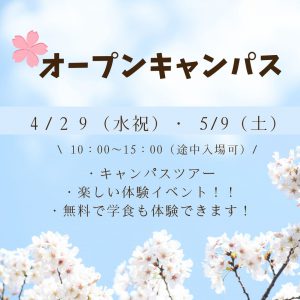 ☆4/29(水祝)・5/9(土)オープンキャンパス